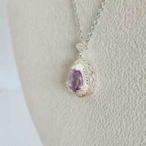 An elegant purple amethyst pendant necklace with stainless steel chain.