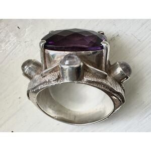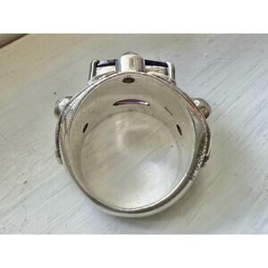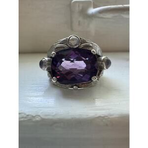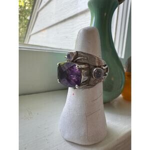 Purple Amethyst Ring Rainbow Moonstone Hand Made Carved Sterling Silver US 8.5