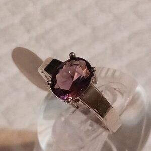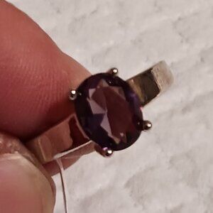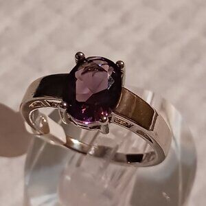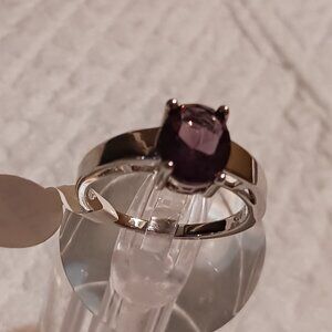Purple Amethyst Silver Solitaire Fashion Ring Size 7 NWOT