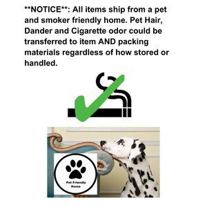 **NOTICE**: All items ship from a pet and smoker friendly home. Pet Hair, Dander and Cigarette odor could be transferred to item AND packing materials regardless of how stored or handled.