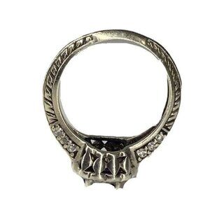 Purple Amethyst? Solitaire clear stones surround Marked 925 silver ring Size 7.5