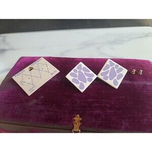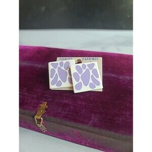 Purple And White Animal Print Plastic Earrings Vintage NOS