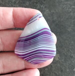Purple striped agate pendant is perfect for jewelry making and crafts. Triangular shape.