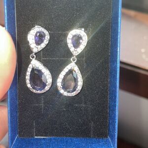 Purple CZ Dangle Drop Solitaire Silver Diamond CZ Embellished Earrings