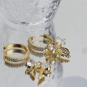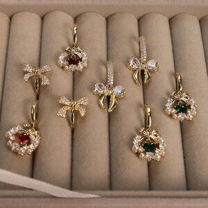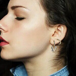 Shiny drop bow small circle hoop, diameter measured 0.71 inches, plug back for pierced ears, rings can be worn separately with the charm, perfect for cartilage stacking, graceful with any outfit, whether it's for everyday wear or a special date.