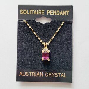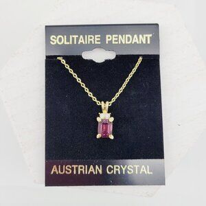 Purple Austrian Crystal Solitare Pendant Necklace Emerald Cut Gold Tone Delicate