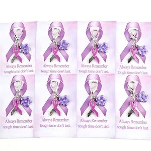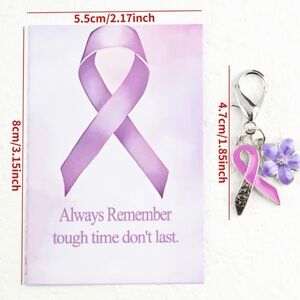 Show your support with this elegant purple awareness ribbon keychain. Features a charming floral accent and a motivational message. Perfect for adding a meaningful touch to your accessories. Set of 4