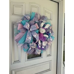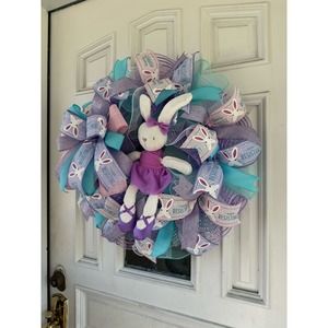 Purple Ballerina Bunny Rabbit Mesh Ribbon Easter & Spring Wreath Door Hanger xxx