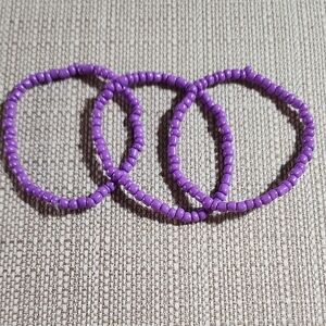 Set of three purple beaded bracelets. Perfect for adding a pop of color to any outfit.