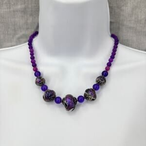 Purple Beaded Necklace with Galaxy-Inspired Statement Beads 19" Collar Length