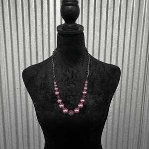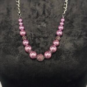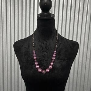 Add instant glam to any outfit with this bold purple beaded statement necklace! Featuring graduated faux pearls in a vibrant purple hue, this piece is highlighted by sparkling rhinestone-encrusted accent beads. The large center bead is fully studded for a stunning focal point. Finished with a silver-tone chain and adjustable extender for a comfortable, custom fit.