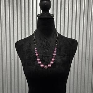 Purple Beaded Statement Necklace Rhinestone Accents Adjustable Chain Bold