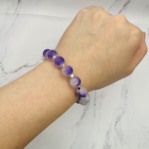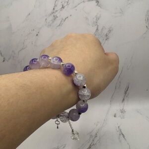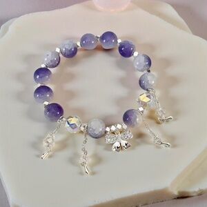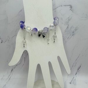 Purple Beaded w/ Bow Charm Bracelet - Small wrists