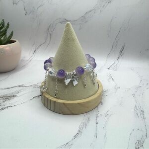 Purple Beaded w/ Bow Charm Bracelet - Small wrists