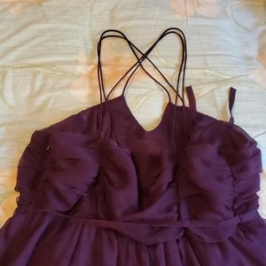 Dark purple short dress with beading on chest and crisscross straps. Only worn once, good conditions. *smoke dree home*