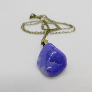 Purple Blue Polished Stone Pendant Necklace. 22" antique gold plated chain and lobster clasp. Pendant measures 1.25 in by .75 in.