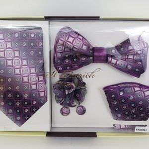This is a Matching Men's Bow Tie, Necktie, Flower, Hanky & Cuff Links Combination Box Set - GTB663-1