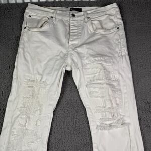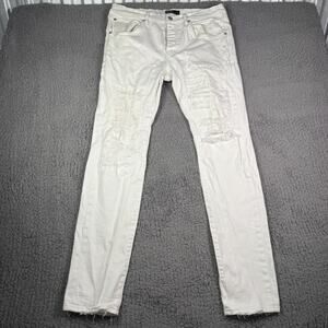 Purple Brand Jeans Mens 36x32 White P001 Skinny Distressed Denim Button Fly