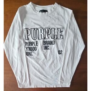 Purple Brand Long Sleeve White Graphic Tee Shirt Y3000 UNT 02, Size M, NEW