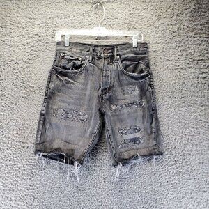 Purple Brand Shorts Mens 28 Black Distressed Ripped Denim Mid Rise Raw Hem Jorts