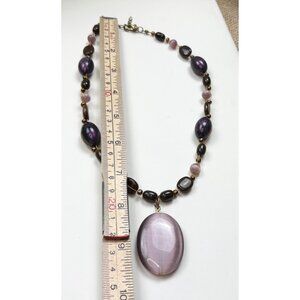 Purple & Brown Beaded Necklace With Large Glass Center Pendant