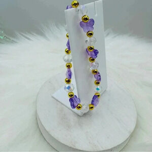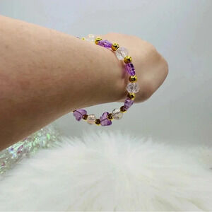 Purple Butterfly Charm Beaded Bracelet