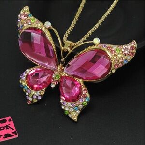 Purple Butterfly Necklace with Multicolor Tips -Crystals & Rhinestones Accents