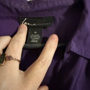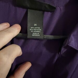 Stylish purple button-up shirt with a classic collar. 3/4 sleeves- Business casual