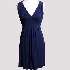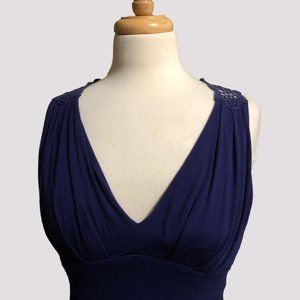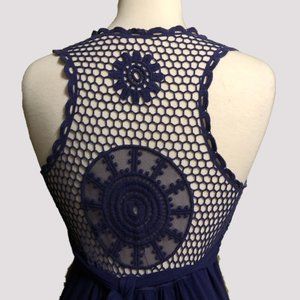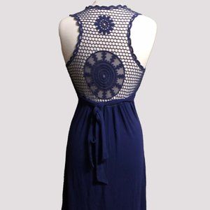 Cable & Gauge lattice back sleeveless dress with wrap-around bel.