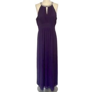 Purple Chiffon Beaded Keyhole Halter Maxi Dress Gown size Large bridesmaid