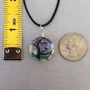 Purple Circle Real Flower Glass Tree Butterfly Necklace NWT