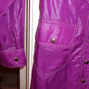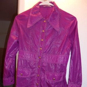 Up for sale is a 1970's Purple color Cire Nylon Jacket/Raincoat size Medium. This is the following features: