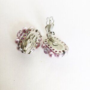 Purple Clip On Clusters Earrings Vintage Beaded Silver Tone Setting Lightweight