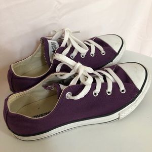 Purpule chuck taylors Size 3 Kids, which is 6 women’s (I’m a 6-6.5 and it fits comfortably) Worn once Like new Smoke free clean home