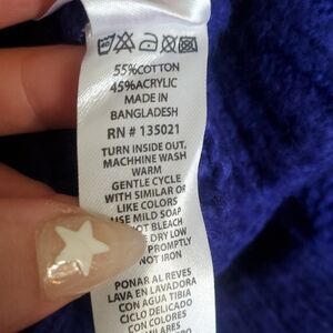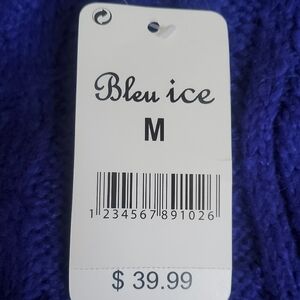 blueish purple. Cozy cable knit design. Perfect for chilly days. Classic style.