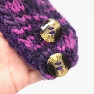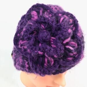 Beautiful handmade crochet head wrap in purple tones with large flower and two button adjustable closure. Super warm and cozy! In great condition.