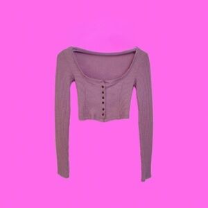 Stylish purple cropped cardigan with button details.
