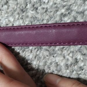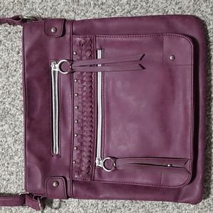 Cute dark plum purple crossbody with silver tone zippers.