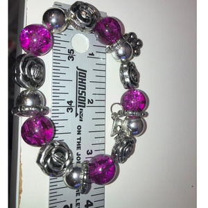 Purple Crystals Silver-Tone Beaded Charm Bracelet!