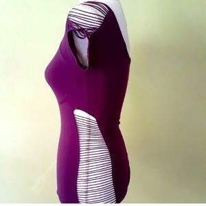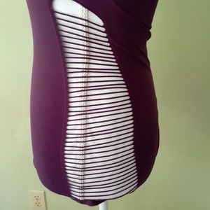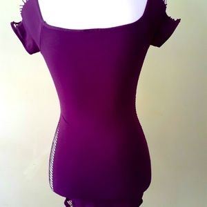 Purple cut out corset top. Cutouts all down each side and shoulders. Bra is hidden perfectly under this top. Faint lines under bust that define cups! NWOT bought at Guess in Miami Beach