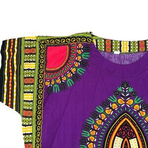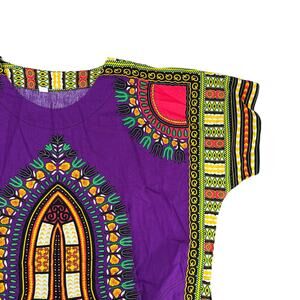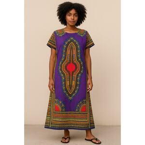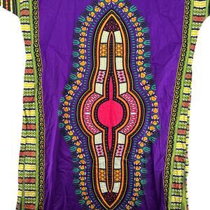 Purple Dashiki Maxi Dress Traditional African Tunic Vibrant Print Cotton NWT