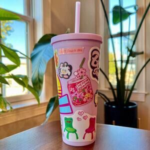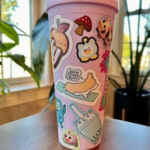 ✨ Purple Deco Travel Tumbler ✨ Lavender travel cold cup decorated with vinyl stickers!