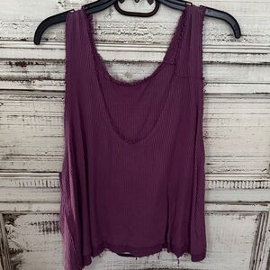 Purple Distressed Ribbed Tank Top