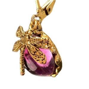 Purple Dragonfly Earrings Vintage Victorian Style Glass & Gold Metal Insect NEW