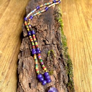 DESCRIPTION: Beautiful Minimalist Style necklace created using Amethyst, Purple Chalcedony, beautiful Glass Seed Beads, Gold Hematite Beads and Gold Plated Components.