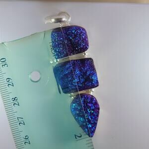 Purple Druzy Quartz Sterling Silver Pendant 2.5" Iridescent Triple Drop