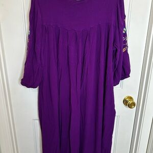 Beautiful purple dress with colorful floral embroidery. Perfect for any occasion.