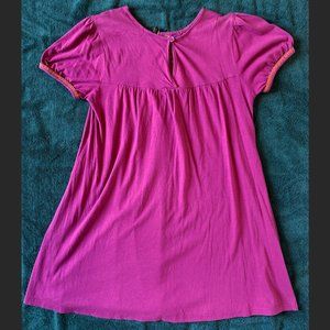 Boho-style purple tunic dress with cute capped sleeves and floral embroidered neckline. Stretchy cotton with a-line shape and button closure in back. Size 8 (UK). Please don't hesitate to contact me if you have any questions!