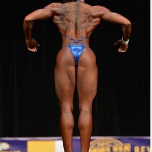 Model Photo is to show fit and cut. This suit will be custom made to your height, weight, and cup size. We at Barely Visible Bikinis have been custom making competition suits for over 35 years. We have a boutique outside Atlanta Ga. We are here for any questions. This suit is stunning under the lights and perfect for 1st timers or pros.