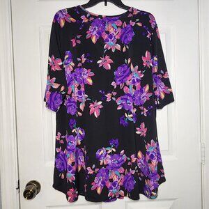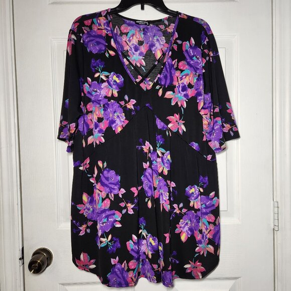 Purple Floral Criss-Cross Neck Babydoll Blouse - Size: 2X